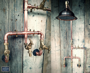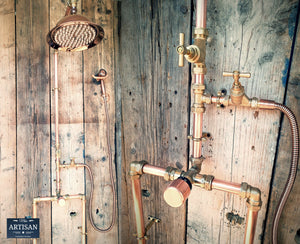 Copper Rainfall Shower With Lower Tap And Hand Sprayer - Wall Mounted